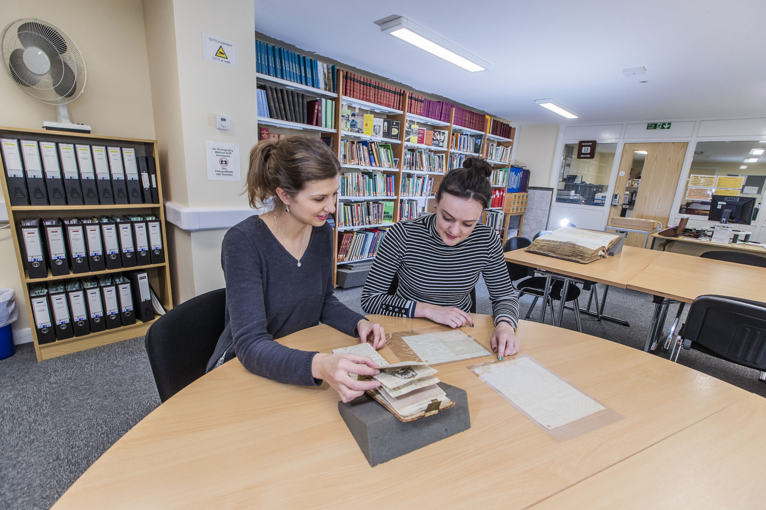 Yn ogystal â chadw cofnodion gwreiddiol, rydym hefyd yn cadw casgliad o lyfrau hanes lleol cynhwysfawr a chyhoeddiadau eraill. Mae gennym ddigonedd o le ar y byrddau a chyfrifiaduron gyda rhaglenni Find My Past a thanysgrifiadau i Ancestry. Mae gennym wasanaeth DiWifr ar gyfer gliniaduron a theclynnau eraill, a pheiriannau darllen microffilm a microfiche.